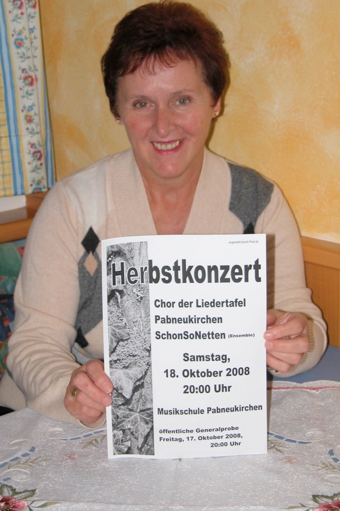 Unsere Chronik... 2025 - Fest der Jubelpaare 2024 - Trachtensonntag 2024 - Sommerkonzert 2023 - Jubiläum Goldhauben Tag der Tracht 2022 - d'Weihnocht im Woid 2022 - Adventklänge im Strudengau 2019 - Adventkonzert 2019 - d'Weihnocht im Woid 2018 - Herbstkonzert 2017 - Tag der Blasmusik 2017 - 130 Jahre Liedertafel 2017 - d'Weihnocht im Woid 2016 - Herbstkonzert 2015 - Adventkonzert 2014 - Herbstkonzert 2014 - Lange Nacht der Museen 2014 - Marktfest Pabneukirchen 2014 - Fest der Chormusik 2013 - Marktfest Pabneukirchen 2013 - Adventkonzert 2013 - Jubiläum Goldhauben 2012 - Marktfest Pabneukirchen 2012 - 125 Jahre Liedertafel 2011 - Adventkonzert 2010 - Herbstkonzert 2010 - d'Weihnocht im Woid 2009 - Sportplatzeröffnung 2009 - 80. Geburtstag Pfarrer Otto Ransmayr 2008 - Herbstkonzert 2003 - Kürbislichterfest 2003 - Adventkonzert 2002 - Singen beim Heimatverein 2002 - Herbstkonzert